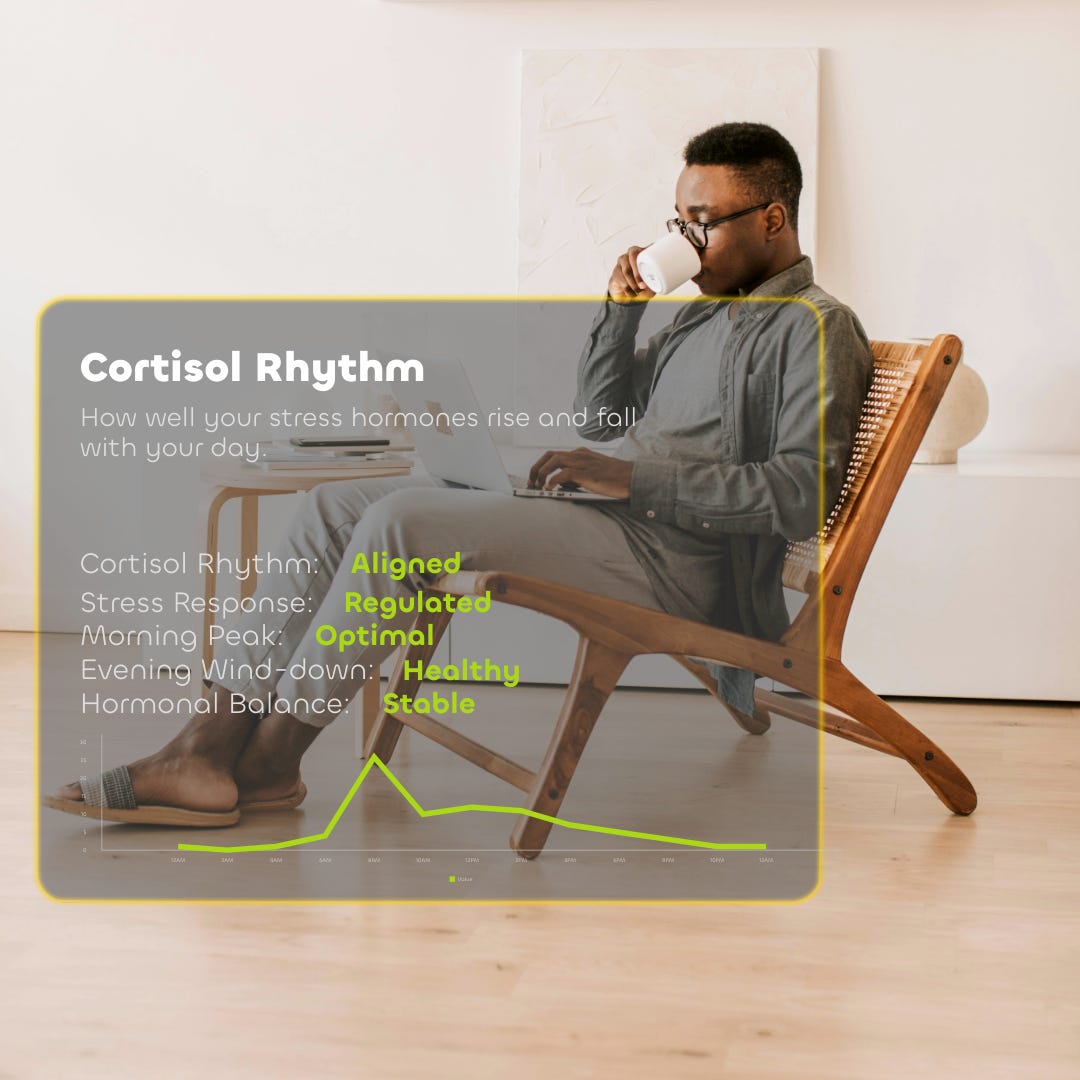 You see, your body is designed to release cortisol in a predictable rhythm across the day. When that rhythm is aligned, you feel alert in the morning, focused through the day, and naturally ready to wind down at night. When the rhythm is disrupted, everything feels harder.